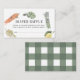 Diese niedliche "lokal gewachsene Baby" Gender-Neutral-Bauernmarkt Baby-Dusche-Windel-Lotterielekarte mit weißem Hintergrund mit Gemüse und Obst in Aquarell. Die Rückseite weist einen weißen Hintergrund mit grünen Büffel-/Gingham-Karo-Mustern auf. Personalisieren Sie Ihre Bedürfnisse. In meinem Geschäft finden Sie passende Produkte.
