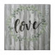 Bauernhaus Inspiration I von Jennifer Paxton Parker. Verfügt über "Liebe" in Skripten mit einem schönen grünen Kranz und Not leidenden Holzpaneelen.