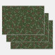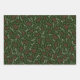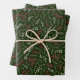 Rustikales Bauernhaus Land dunkelgrün, rot-weiß Blattwerk, Kranz, Blätter, Blätter botanisches Muster niedliche Ferien Geschenk Packpapier Blätter. Set 3. Ideal für Weihnachten und die Ferienzeit.