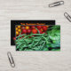 Zeichnen Sie Kunden zu Ihrem Bio Lebensmittelgeschäftspeicher mit dieser lebhaften Geschäftskarte, die Eigenschaftsrot und die Goldkirschtomaten, grüne Bohnen, Schneeerbsen und Gurken, zum einer reizenden, künstlerischen Front zu schaffen. Die Rückseite hat Birnen, Rosen und spezifischen Text. Fertigen Sie allen Text besonders an, um Ihren Speicher zu passen.