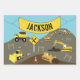 Niedliche Darstellung eines Baugeländes und LKW-Themas. Zu den Transportfahrzeugen für den Bau des LKW zählen der Ablagemaschine, der Bagger, der Bagger, der Bulldozer, der Kran und der Frontlader. Das perfekte Design für LKW, Schwermaschinenfans, Jungs und Mädchen. Ideales Weihnachtsgeschenk, Geburtstagsgeschenk, Kinderzimmer-Dekoration, Kinderspielkunst, Wohngestaltung oder zurück zur Schule. Passen Sie den Namen an und machen Sie ihn zu Ihrem eigenen.