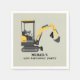 Perfekter Geburtstagsparty-Teller für Kinder, die Liebe von Baufahrzeugen. Fügen Sie einen Namen und Party-Details hinzu, indem Sie auf den Button "Personalisieren" klicken. Der Bagger ist in den Farben Gelb und Dunkelgrau in lebhaften Farben gehalten.