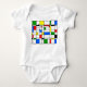 Dieser Babybodyanzug hat ein Bauhaus-Design in Primärfarben, das wie Buntglas aussieht. Farbenfroh, mutig, lustig!