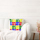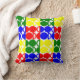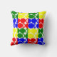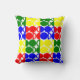Dieses Kissen hat ein Bauhaus-Design aus sich wiederholenden Kreisen und Halbkreisen in rot, grün, blau und gelb. Wie dieses Design, aber wollte verschiedene Farben? Nachricht.