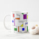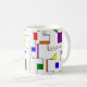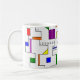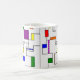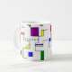 Diese Tasse hat ein Bauhaus-Design von Linien, die vertikal und horizontal verlaufen, um ein Raster mit Quadraten, Rechtecken, Dreiecken und Kreisen zu bilden, die um das Raster angeordnet sind. Wenn Ihnen das Design gefällt, aber andere Farben bevorzugen, dann schreiben Sie mir.
