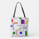 Diese Totentasche hat ein Bauhaus-Design von Linien, die vertikal und horizontal verlaufen, um ein Raster mit Quadraten, Rechtecken, Dreiecken und Kreisen rund um das Raster zu bilden. Wenn Ihnen das Design gefällt, aber andere Farben bevorzugen, dann schreiben Sie mir.