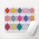 Dieses Mauspad hat ein Bauhaus-Design von Diamanten auf lila Streifen mit einem Design, das wie Quilting aussehen soll.