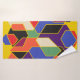 Dieses Handtuchhandtuch-Set hat ein Bauhaus-Design aus überlappenden Sechsecken in vielen Farben.