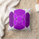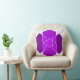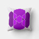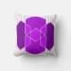 Dieses Kissen hat ein Bauhaus-Design von überlappenden Hexagons in lila Tönen auf einem Feld von weißen und gepunkteten lila Linien.