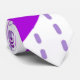 Diese Krawatte hat ein Bauhaus-Design von überlappenden Hexagonen in lila Tönen auf einem Feld von weißen und gepunkteten lila Linien.