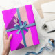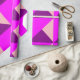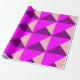 Dieses Verpackungspapier hat ein Bauhaus-Design aus überlappenden Dreiecken in lila, magenta und rosa.