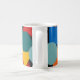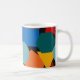 Diese Tasse hat ein Bauhaus-Design mit zufälligen Formen in Blau, aquamarin, Gelb, Rot und Orange.