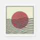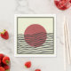 Minimalistische Bauhaus Wandkunst mit einer kühnen roten Sonne und fließenden schwarzen Wellen. Modern, abstrakt und perfekt für stilvolle Wohngestaltung.