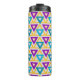 Diese Thermalflasche hat ein Bauhaus-Design aus sich wiederholenden Dreiecken in Gold, Türkis, aquamarin, lila und helles Gold. Wenn Ihnen das Design gefällt, aber andere Farben bevorzugen, dann schreiben Sie mir.