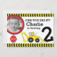 Baukinder 2. Geburtstagsfeier Party Einladung mit einem Grabmesser und hellgelben und schwarzen Warnstreifen. Ideal, um die Lieblingsfreunde Ihres Sohnes zu seiner Geburtstagsfeier im Bau / Gebäude einzuladen. Passen Sie Ihre Geburtstagsdetails und Ihr Foto an. Einzigartig gestaltet und illustriert von Sarah Trett.