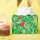 Verpackungspapier in einem Kunst Williams Morris Nouveau Textilmuster der lychee Baumniederlassungen und -Blätter, in den Schatten von Limonem und von tiefgrünem, betont mit roten lychee Früchten und gelben Blüten, auf einem hellgrünen Hintergrund