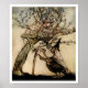 Schöne Illustration von Arthur Rackham für ein altes englisches Märchen, 'The Two Sisters'. Eine Schwester war nett, die andere nicht so nett. Die nette Schwester half einem Baum, gerade zu stehen, und im Gegenzug versprach der Baum dem Mädchen zu helfen, wenn es sieben Jahre lang möglich sein sollte. Die Illustration ist das nette Mädchen, das vom Baum versteckt wird, um die böse Hexe zu vermeiden.