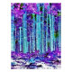 Ein lebendiger abstrakte von blauen Bäumen, lila Blätter und Unterholz.