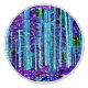 Ein lebendiger abstrakte von blauen Bäumen, lila Blätter und Unterholz.