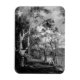 Ein Schwarz-Weiß-Fotodesign von Herbstbäumen, Weg und See.