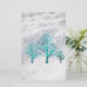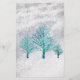 Bäume und Schneekristalle sind ein abstraktes Digitalbild in den Farben Winterweiß und Türkis.