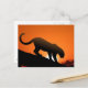 Ein Leopard steigt einen Baum hinab, um seine Abend-Jagd zu beginnen. Seine Silhouette steht im Kontrast zur untergehenden Sonne. Computerkunst von Kathie Miller.
