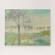 Baum Stand II von Jennifer Goldberger. Enthält Bäume in gedämpften Farben vor einem grünen Hintergrund.