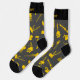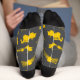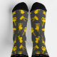 Silhouette von schweren Baumaschinen. Nahtloses Muster. Benutzerdefinierte Hintergrundfarbe. Benutzerdefinierte Farbe des oberen Streifens. Benutzerdefinierter Text auf jeder Socke.