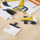 Dieses Design umfasst vier klassische Bausätze in fett gelb, auf braunem und schwarzem Hintergrund angeordnet. Es umfasst andere Bauelemente wie Geländer und Verkehrsknotenpunkte sowie schwarz-gelbe Streifen. Wir haben Sie für eine Konstruktion LKW Thema Party: Vorräte, Dekoration, köstliche Leckereien und sinnvolle personalisierte Geschenke!