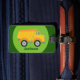 Ein cooler gelber Müllwagen auf einem hellen und dann dunkelgrünen Hintergrund für ein Kind, das gerne Baufahrzeuge und Autos. Personalisieren Sie sich mit Ihrem Kleinkind- oder Kindernamen für eine niedliche Ergänzung zu einer Kinderreisetasche.