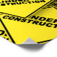 Eine Sammlung von roten, rautenförmigen Schildern mit schwarzem Druck, die "im Bau" steht, macht ein interessantes Industrie- oder Gebäude-Muster.