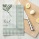 Bay Leaf Herb Kitchen Towel – Green Gingham Border Geschirrtuch