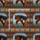 Schönes gemaltes Portrait eines nativ-amerikanischen Bucht-Pfefferpferdes mit Kriegsmalensymbole, Federn und geflochtenen Zügen.