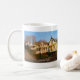 eine coffe Tasse, die ein Bild der Hütten im Dorf von Bayside Maine kennzeichnet.