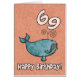 Alles Gute zum Geburtstagwal - 69 Jahre alte niedliche Buckelwal auf einer altersspezifischen Geburtstagsgrußkarte. Innerer Text: "Hoffnung haben Sie einen Wal einer Zeit!"