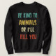 Be Kind to Animals Or I'll Kill You Animal Sweatshirt