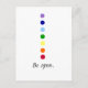 Charmantes minimalistisches Postkartendesign mit einfacher Chakra-Grafik und anpassbarer "Be Open"-Nachricht. Ideal für Yogalehrer, Massagetherapeuten und andere, die ganzheitliche Wellness und Meditation praktizieren.