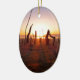 Fotografie an der Oregon Küste der Driftwood-Schöpfung meiner Familie gegen den Sonnenuntergang aufgenommen.