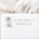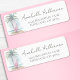 Set the tone for a relaxed and playful beach-themed celebration with this coastal-inspired return address label. The design features a soft watercolor background with a tall palm tree and a pink surfboard on the left, resting on sandy shores beside gentle ocean waves and a bright blue sky. Inspired by the “Baby On Board” theme, it brings a fun, summery vibe perfect for baby showers, birthdays, or coastal events.