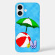 Vergnügen Sie sich am Strand oder am Pool mit der Kunst eines roten Beachballs, grünem Sonnenschirm, Sandalen und Sonnenöl. Passen Sie es an, um Ihren Namen oder Ihre Nachricht hinzuzufügen, Elemente zu verschieben, Ihr Foto hochzuladen und noch mehr, sogar Ihr Design für später retten.