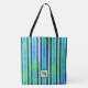 Ein klassisch geräumiger Sommertotensack in Strandglasfarben, der in einem batik-artigen Streifen-Muster gedruckt ist. Blues, Grüntöne und Marine. Bearbeiten Sie Ihr Monogramm und fertig.