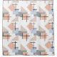 Dieser Duschvorhang hat ein Bauhaus-Design aus sich wiederholenden Rechtecken, Quadraten, Diamanten und Dreiecken in Strandfarben von Bräune, Grau, Blau und Orange.