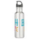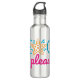 Eine farbenfrohe Typografie, die sagt, "Strand bitte" Wasserflasche, um am Strand mitzunehmen