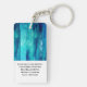 Une merveilleuse illustration d'aquarelle vibrante dans des tons variés de bleu des vagues de l'océan est idéale pour les stations balnéaires, les lodges, les bnb's et les hôtels. Ce design abstrait mais élégant a des modèles personnalisés pour votre nom d'établissement; des détails sur l'endroit où les clés doivent être retournées si elles sont trouvées et le numéro de chambre sur le devant dressé contre un badge blanc bordé d'une parties scintillant en faux or.