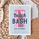 Niedliche Sommergeburtstagsfeiern für Ihre kleine Strandfeier mit einer rosa und weiß gestreiften Strandkabana-Illustration mit "Strandbash" in marineblau-weiß Retroschrift. Personalisieren Sie Ihre Geburtstagsfeierdetails unten.