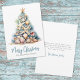 Get into the holiday spirit with this unique Christmas card featuring a Christmas tree made of shells and starfish. Perfect for sending beachy holiday wishes, this card is ideal for anyone living in tropical places like Florida, Hawaii, or the Bahamas, or for those who simply adore the beach look. The tree, topped with a starfish, is a delightful blend of blue and green hues, reminiscent of underwater coral. Set on a sandy base, this card has a charming rustic watercolor style. The combination of simple fonts and script typography gives it a casual yet elegant feel. Perfect for adding a bit of surf and sand to your holiday greetings. Elegant Teal Blue Watercolor Coral Starfish Christmas Tree Seashell Beach Holiday Card.
