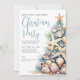 Invite guests to your Christmas Party with this festive and beachy invitation, designed with a relaxed tropical vibe. The layout features a mix of blue and black fonts on the top left, combining script calligraphy with clean serif typography for a cheerful and modern look.