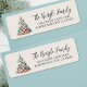 Beach Christmas Tree Return Address Label. This festive return address label features a charming Christmas tree crafted from seashells and starfish, topped with a starfish for a coastal holiday touch. The design rests on a sandy base against an off-white background for a clean, natural look. On the right, your name and address appear in black script and serif fonts, creating a simple yet elegant contrast. Perfect for Christmas cards or holiday invitations, this design adds a touch of seaside charm for anyone who loves tropical or coastal holiday style.