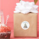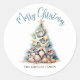 Celebrate in sunny style with this festive round sticker, perfect for your beachy holiday celebration. A large Christmas tree made of beach shells, starfish, and coral sits in the center, bringing a fun and whimsical coastal vibe to your event. The design features a teal blue and tan color palette that captures the feel of a tropical holiday.
