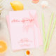 Minimal pinkfarbene bachelorette Wochenende Einladung für Strand-themed oder Palm Springs Destination Junggeselinnen-Abschiede / Wochenenden mit Routen auf der Rückseite. Hintergrundbild von Freepik.
